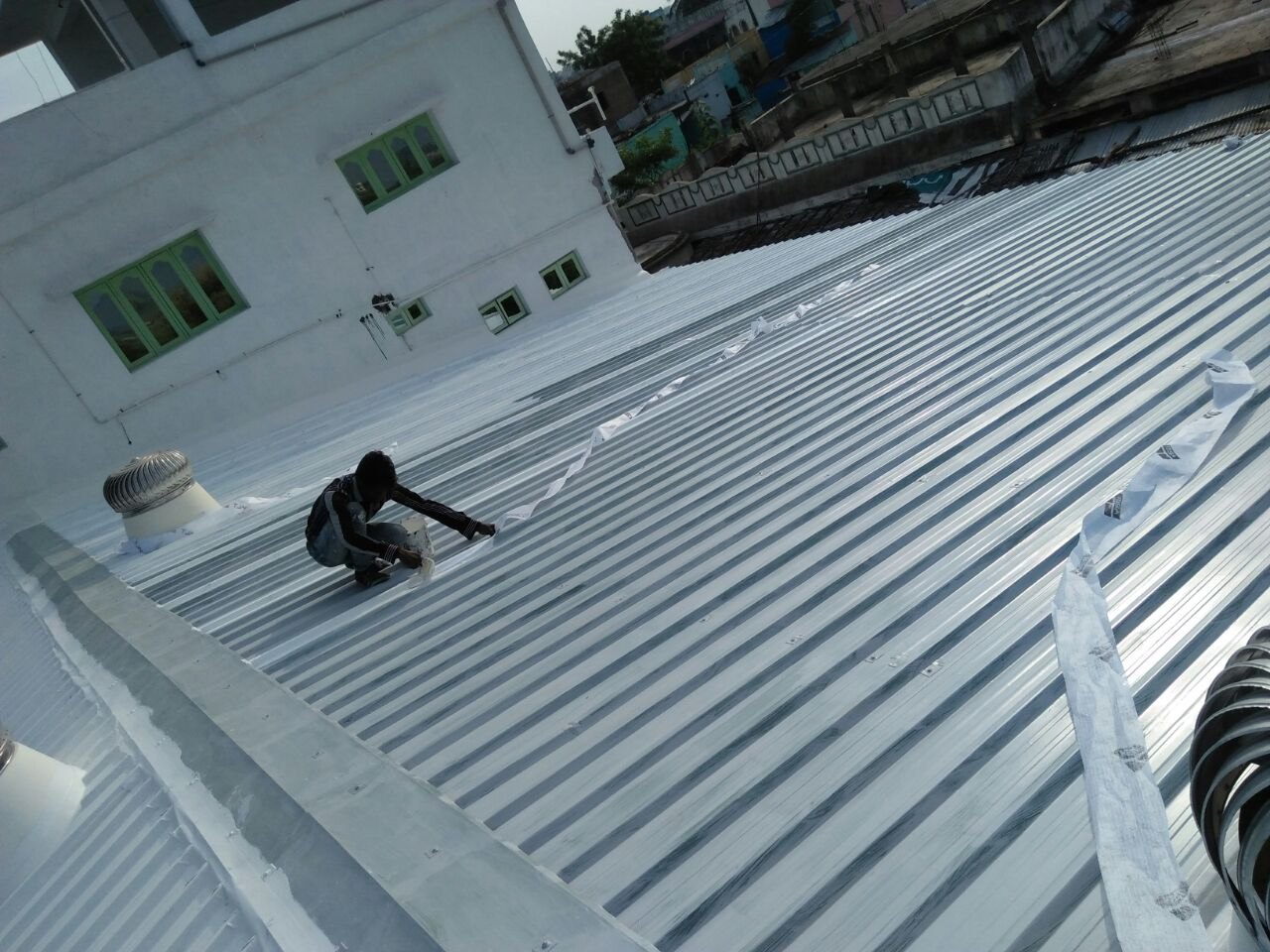 Using Greenseal MS 017 silicone sealant to fill the cracks, followed by 1 coat of Greensseal 103 Aluminum Primer, Zinc rich, anti-rust primer. Over that 2 coats of single component water based PU waterproof coating material Greenseal Polydek Super P. A layer of fiber mesh may be used depending on site conditions. Warranty upto 10 years (Conditions apply).